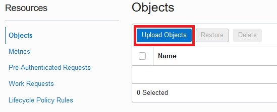 From the Bucket Details Page in your target region, click on “Upload Object” and select the file just downloaded in the previous step.