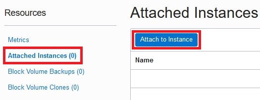 After the Block Volume has been created, attach it to you Compute Instance as usual.