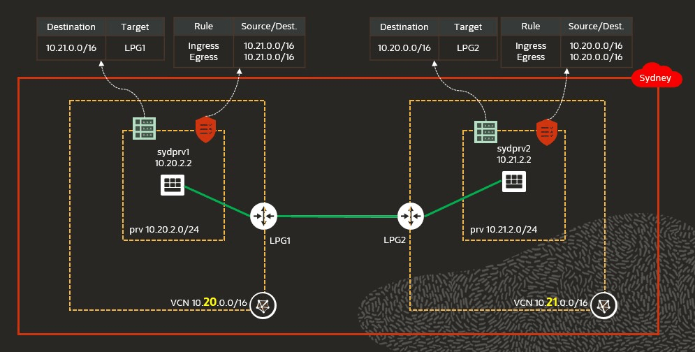 - Two VCNs in local peering relationship must not have overlapping CIDRs.