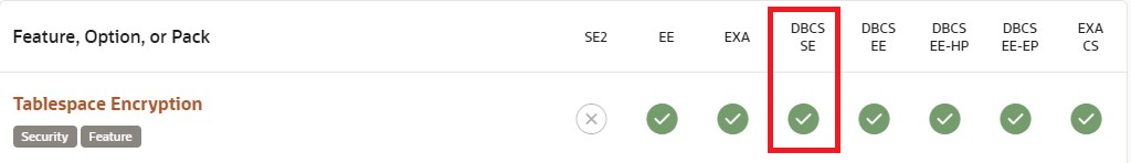 When you provision a DBCS database, you choose one of these four editions and use the options and packs already associated with them. Each edition includes the options and packs from the previous “lower” one (on the left). For example, EE High Performance includes all options in the first three columns in the above image.