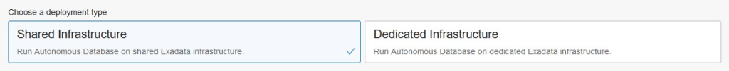 Autonomous Databases have the following Exadata infrastructure options: