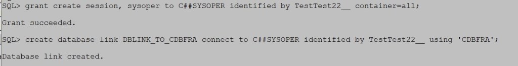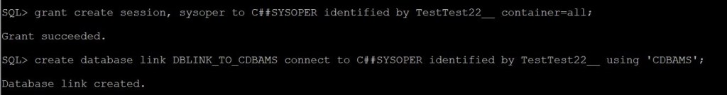 Step 4: on server1 in CDBFRA, grant privileges to SYSOPER and create a database link pointing to CDBAMS on server2.