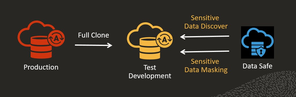 Data Safe is a unified control center for your Oracle Databases which helps you understand the sensitivity of your data, evaluate risks to data, mask sensitive data, implement and monitor security controls, assess user security, monitor user activity, and address data security compliance requirements. A common use case for data masking is to mask your test and development databases after being created as a clone from production databases containing sensitive data: