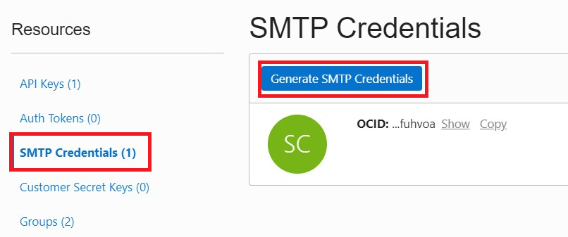 Step 3: Create the SMTP credentials for the user. From the user’s details page, click SMTP Credentials, and then Create SMTP Credentials