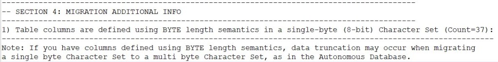 - You have some column values that do not fit when using a multi-byte character set (e.g. UTF8) as Autonomous Database does