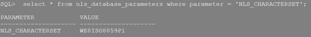 select * from nls_database_parameters where parameter = 'NLS_CHARACTERSET';