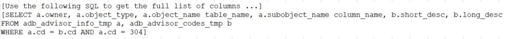 col sql for a300