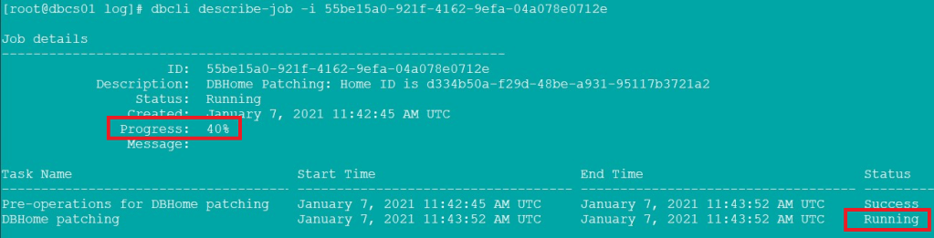 If you want to get more detailed information about the process, this is where the dbcli comes into play. On the local DB machine, as root, run: