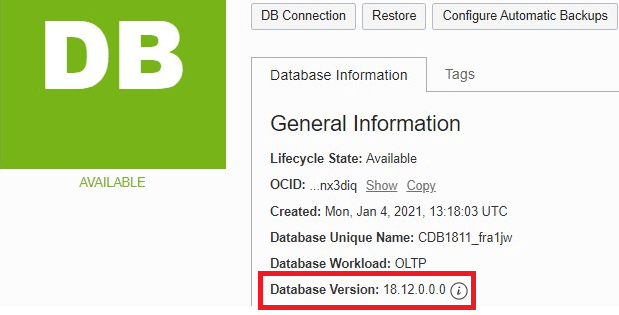 I provisioned a VM DB System with version 18.11, so I can patch it first to 18.12, and then upgrade to 19c. A direct upgarde from 18.11 to 19c is possible. I’ll patch it to 18.12 first only for the demo purpose of this blog.
