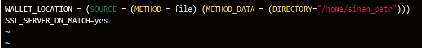 WALLET_LOCATION = (SOURCE = (METHOD = file) (METHOD_DATA = (DIRECTORY="/home/sinan_petr")))