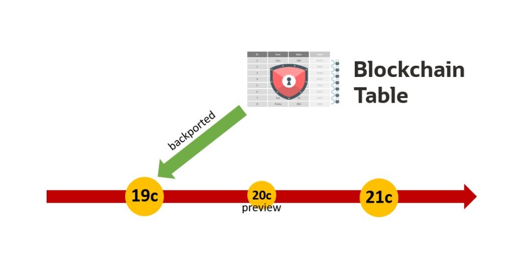 Oracle Blockchain Table was initially introduced in release version 20c (preview only) and later in 21c, but the feature has been backported and is now available in version 19c as well. Blockchain tables are insert-only tables that provide a highly tamper-resistant persistence option. The rows are chained by storing the previous row’s hash in the current row to verify that the data has not been modified. To learn more about blockchain tables and their benefits have a look at this blog post. Today, we will discuss the prerequisites and considerations to use blockchain tables in RU 19.10 and 19.11.