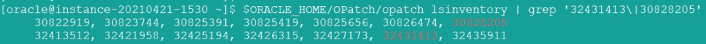 $ORACLE_HOME/OPatch/opatch lsinventory | grep '32431413\|30828205'