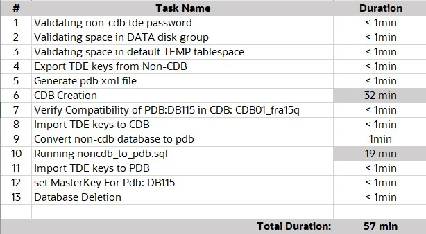 Convert non-cdb database to pdb October 5, 2021 10:29:43 AM UTC October 5, 2021 10:30:49 AM UTC Success