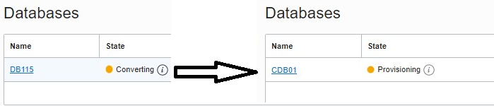 After a while, the non-CDB will be replaced by the CDB in Provisioning state in the Cloud Console.