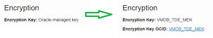This blog post shows how to change the key management for an existing database from oracle-managed keys (using local wallet) to customer-managed keys (using OCI Vault).