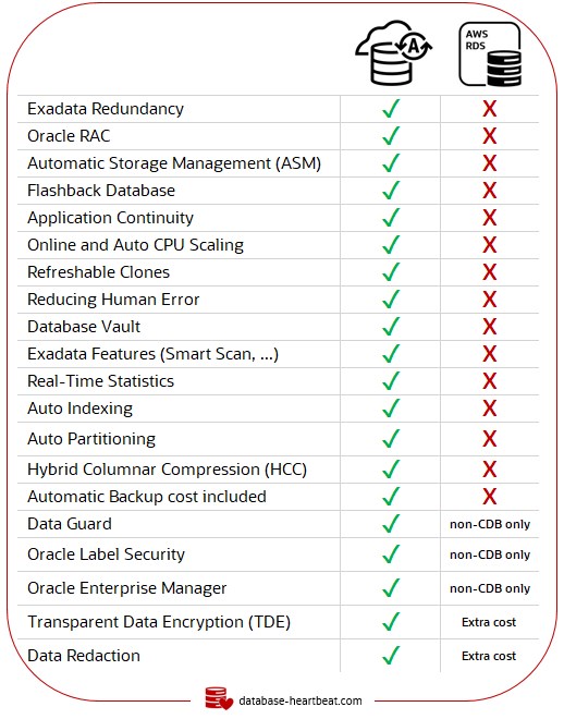 If you are considering Oracle Autonomous Database vs. AWS RDS, have a look at the following summary before taking your final decision: