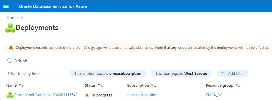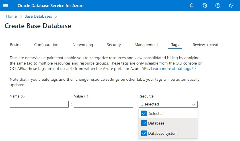 The Oracle Database will be created in an OCI Compartment with the same name as the Resource Group.
