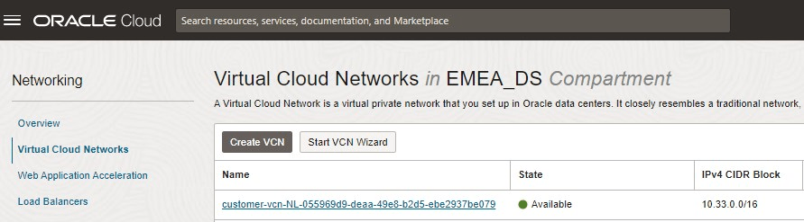- An Azure VNet where your application resides and needs access to the Oracle Database. In this example, westeurope_vnet_01 with CIDR 10.22.0.0/16.