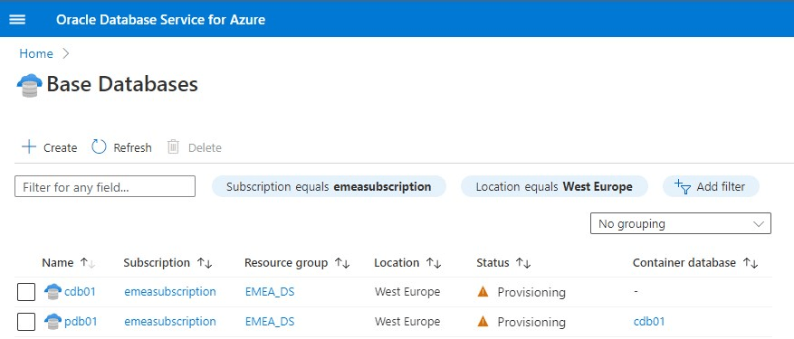 Oracle Database Service for Azure (ODSA) automates and simplifies the Interconnect between Azure and Oracle Cloud. Additionally, it provides a Multicloud portal to create Oracle Databases with the same Azure portal experience. As of today, you can use ODSA for the following Oracle Database Cloud Services: