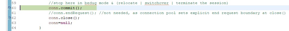 //stop here in bedug mode & (relocate | switchover | terminate the session)