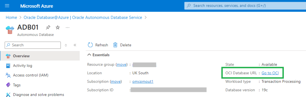 1. From your Oracle Autonomous Database page in the Azure Portal, click on the Go to OCI link.